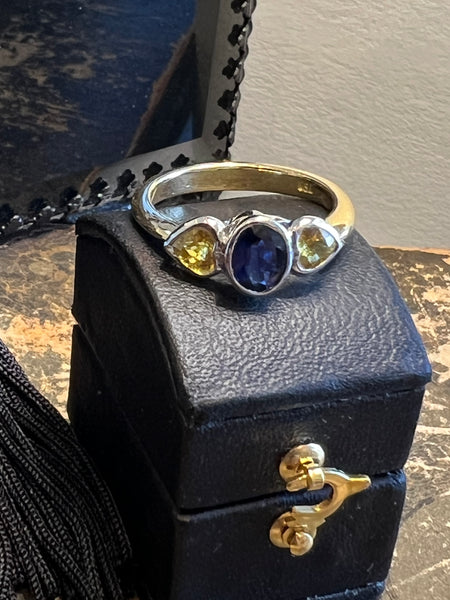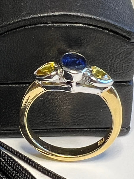 Sapphire Ring. Yellow and Blue Sapphires 3 stone ring set in 18ct gold